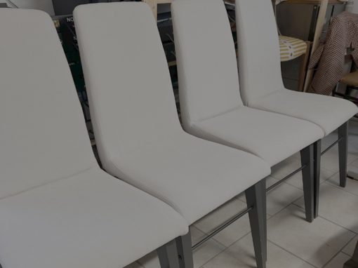 Plus de soixante ans après leurs fabrication, il était temps qu’elles se refassent une beauté entre nos mains. Nous avons tout d’abord fait aérogommer les carcasses, enlevé la teinte et le vernis, pour retrouver la couleur naturelle du hêtre.