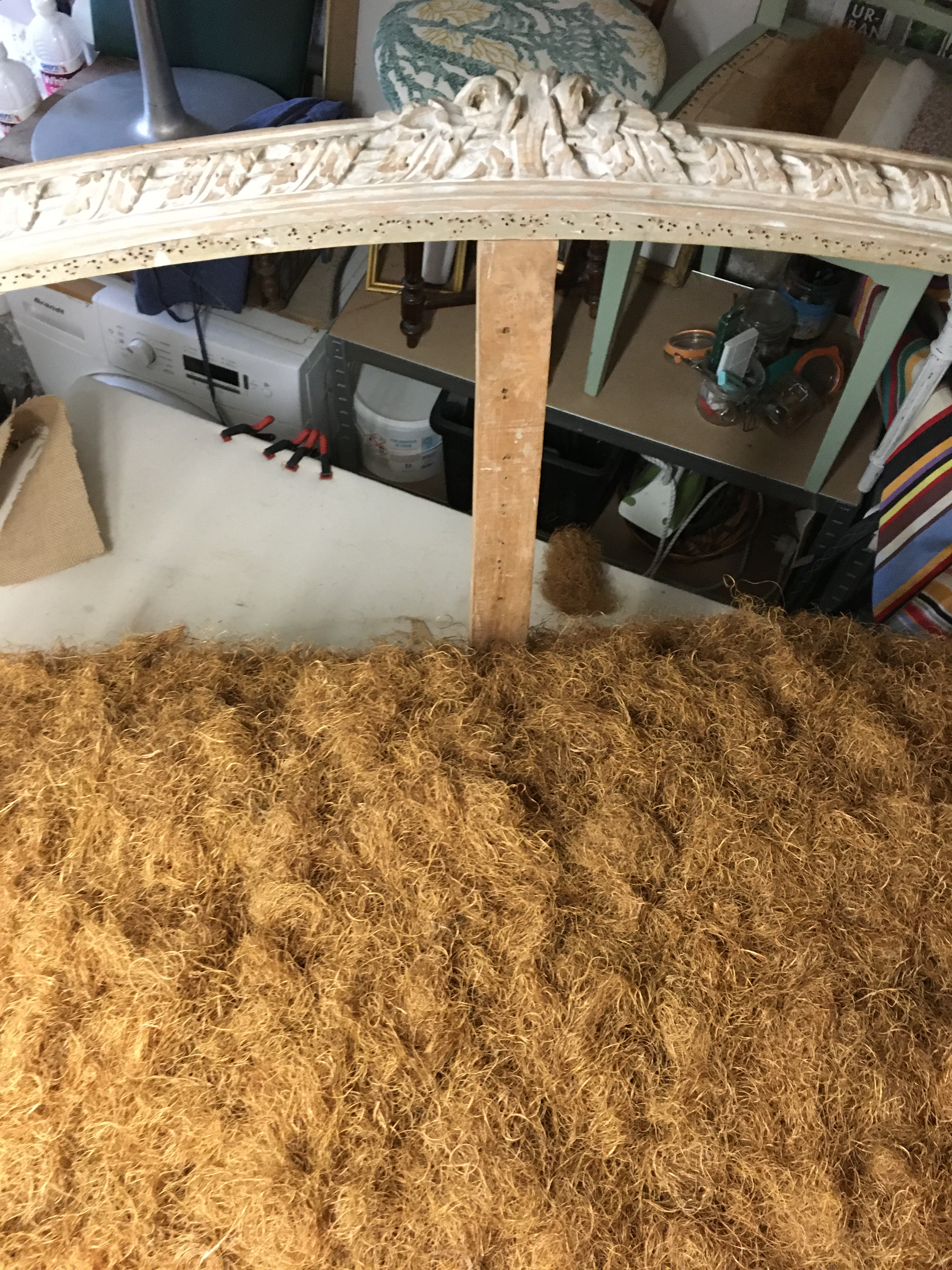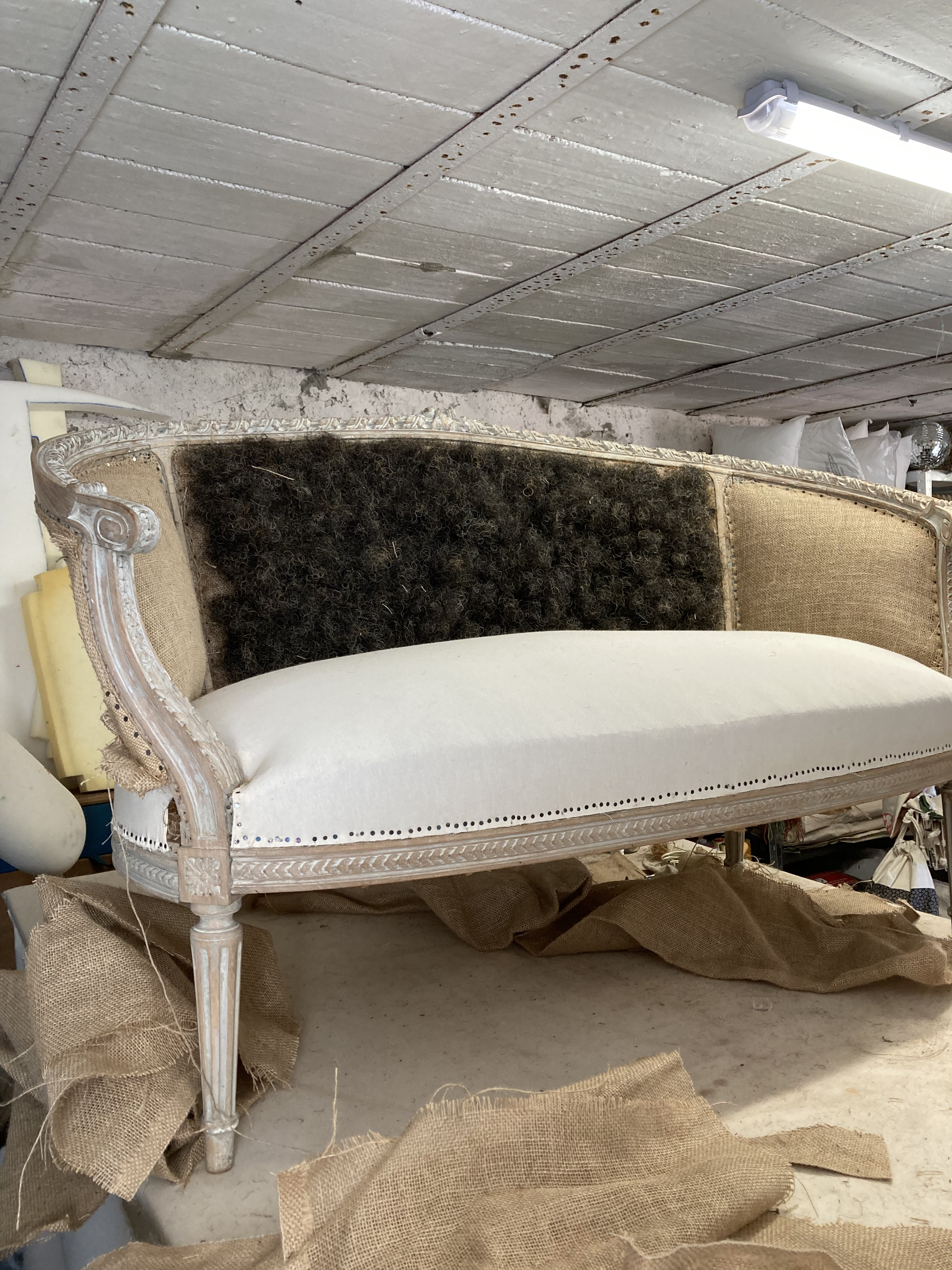 On se retrouve dans le deuxième épisode de la restauration du canapé corbeille Louis XVI. Aujourd’hui nous allons aborder la partie garniture, de la pose des sangles à la mise en blanc. Le dernier épisode sera axé sur la pose de la nouvelle couverture et de la finition. Alors sans perdre de temps, allons-y !